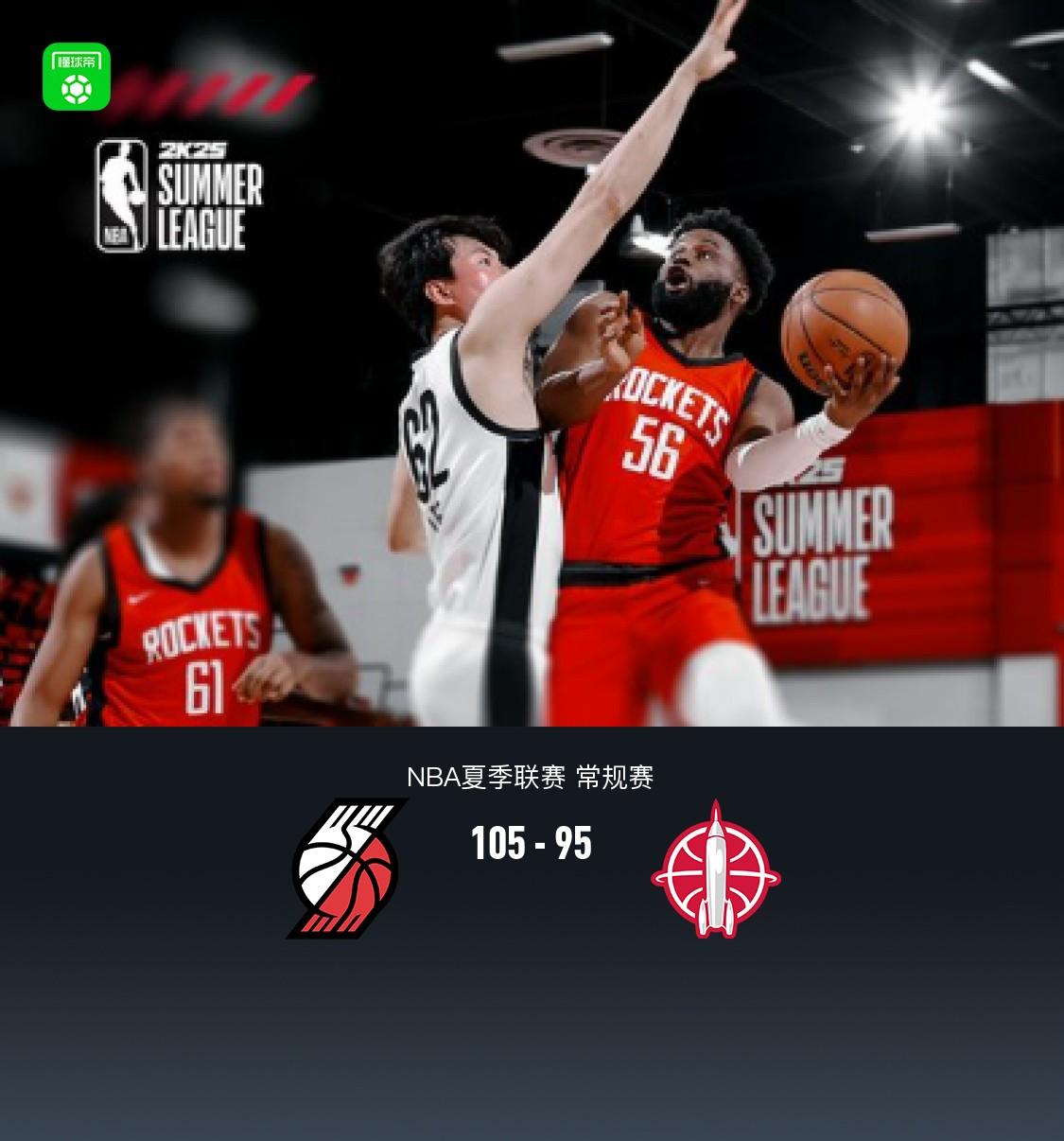 北京时间7月22日NBA夏季联赛,波特兰开拓者对阵休斯顿火箭。崔永熙因小腿伤势回国,缺席本场比赛;谢泼德、克林根、惠特摩尔也都未出战本场比赛。半场开拓者48-40火箭,最终开拓者105-95火箭,以3胜2负的战绩结束夏季联赛。