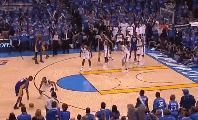 还记得那一球,威少横移抢断塞申斯的传球,带球突破刚过三分线被塞申斯拦腰熊抱。