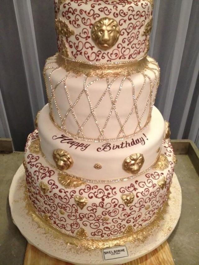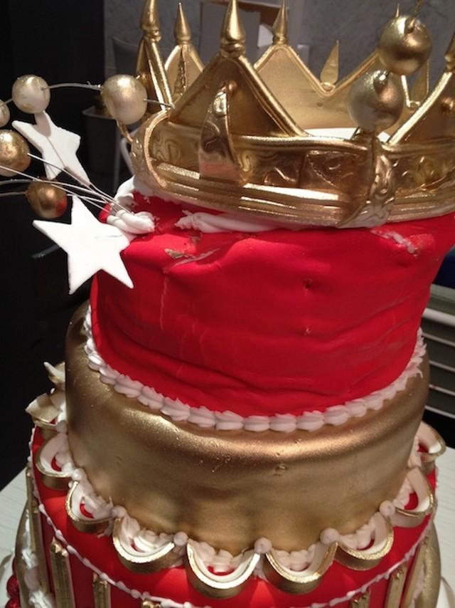 ▲到了2012年,詹姆斯的蛋糕又是什么样?据介绍,这款蛋糕的狮子头也是可以吃的部分,金碧辉煌已经不足以形容了。