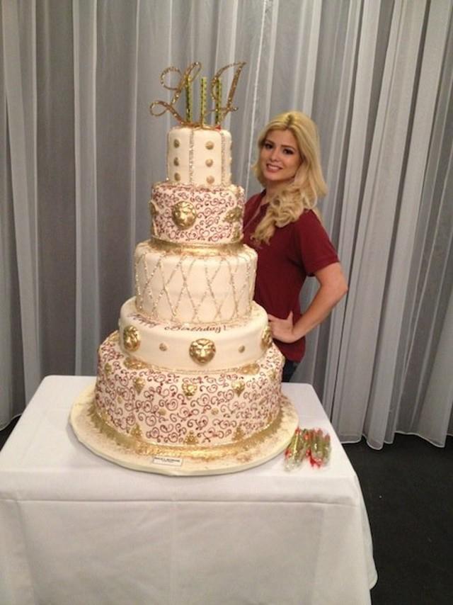 ▲关于2012年的这款蛋糕,其实还有一个小故事。图上这位叫西克曼的大妈,给詹姆斯设计了一款豪华蛋糕,她表示只要这款蛋糕出现在詹姆斯的生日宴会上,为蛋糕店做下宣传,她将分文不取。结果,西克曼后来在网上发现,詹姆斯的生日派对上的蛋糕并不是自己设计的这款。“我的蛋糕去哪儿了?我感觉自己被羞辱了!他们浪费了我的时间和金钱!”西克曼提出向詹姆斯团队索赔3000美金!