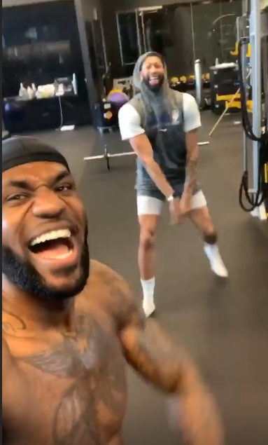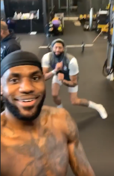 陪伴他的自然还有浓眉,两人现在关系极好,常常结伴出行。就连训练,两人也得腻在一起。看到老詹拿手机对着自己,浓眉自然也得秀一把,他用力摇头晃脑的样子,真是太欢乐了。