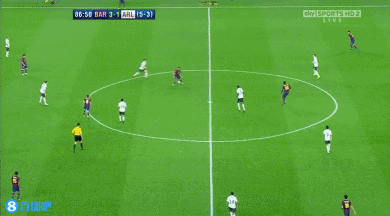比赛进入伤停补时,伤停补时第2分钟,皮克中场送出斜长传,禁区内阿尔沙文头球解围失误,皮球落至底线处阿尔维斯脚下,阿尔维斯倒三角横敲门前,梅西跟上的抢射被科斯切尔尼封堵↓