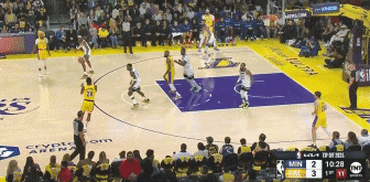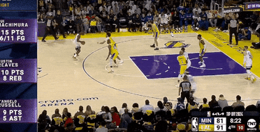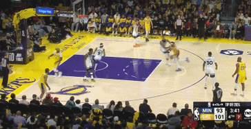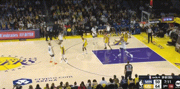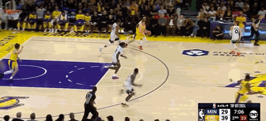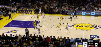 第四节,拉塞尔空配詹姆斯轻松得分!湖人89-81森林狼