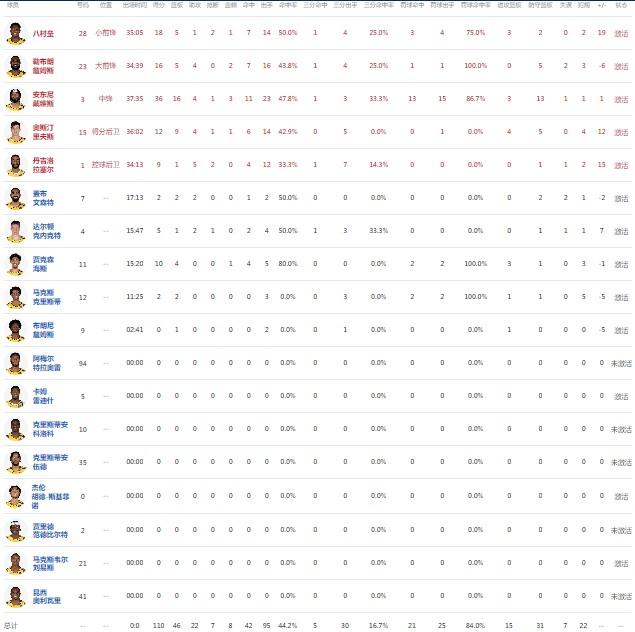 洛杉矶湖人安东尼-戴维斯36分16板4助1断3帽,八村垒18分5板1助2断1帽,詹姆斯16分5板4助2帽;
