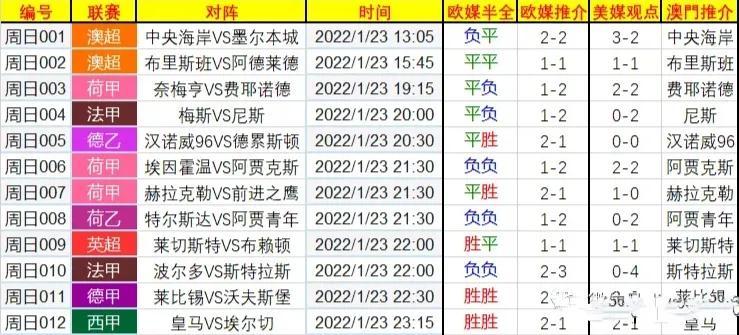 周日003 荷甲 奈梅亨VS费耶诺德 2022/1/23 19:15