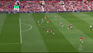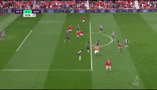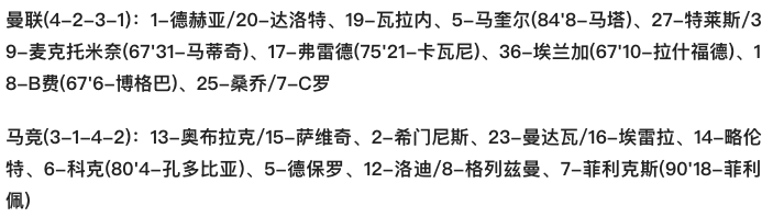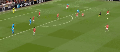 下半场易边再战,第46分钟,达洛特后场长传分球右路,B费脚后跟留球,埃兰加禁区右路低射滑门而过。第51分钟,德赫亚解围不远,德保罗禁区外围得球再来一脚远射,德赫亚倒地将球没收。