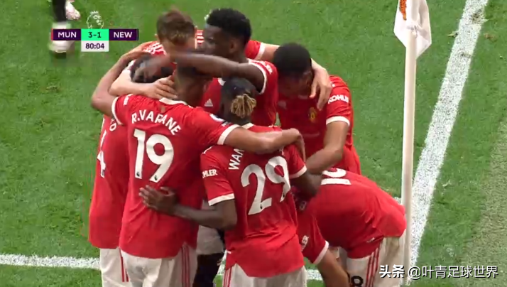 第80分钟,博格巴传球,B费的世界波破门,曼联3-1锁定胜局!