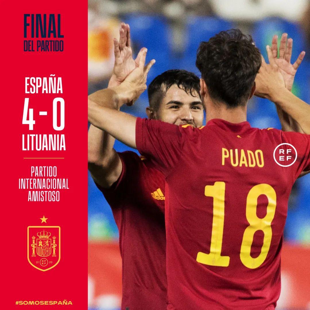 北京时间6月9日,奥斯卡·希尔和普阿多在友谊赛中首次代表西班牙国家队登场!希尔首发出战半场,普阿多替补打进国家队生涯首球,最终帮助西班牙4-0击败立陶宛。