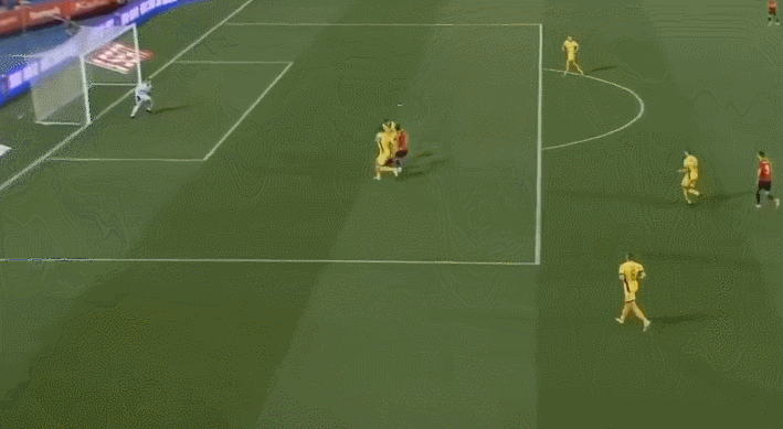 下半场第54分钟,西班牙获得前场任意球,米兰达-冈萨雷斯主罚折射破门