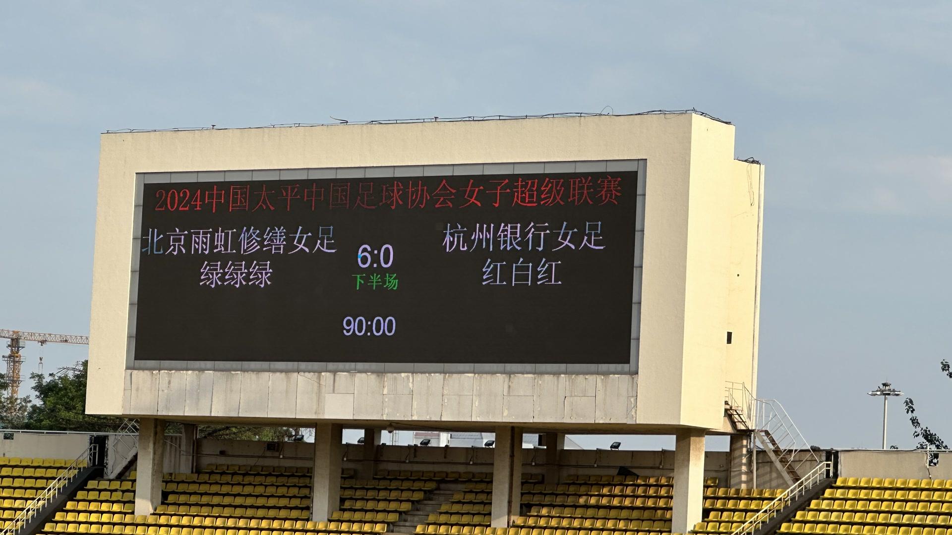 6月30日下午,在本赛季女超联赛第12轮的一场比赛中,北京雨虹修缮队在主场先农坛体育场6比0大胜杭州队,收获两连胜。过去两场比赛,北京女足打入9个进球,超过此前10轮的总和(7个)。