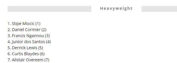 ufc重量等级历史排名?1.斯蒂佩·米西奇2.丹尼尔·科米尔(DanielCormier)3.弗朗西斯·恩甘努4.柯蒂斯·布莱德斯5.少年多斯桑托斯6.德里克·刘易斯7.贾...2.丹尼尔·科米尔(...
