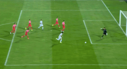 第48分钟,李在城一脚直塞球打穿防线,孙兴慜单刀机会推射破门!韩国1-0领先!
