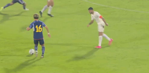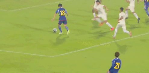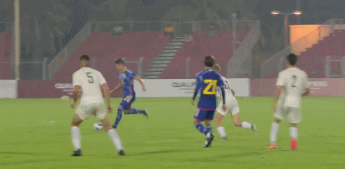 上半场伤停补时第2分钟,铃木唯人头球摆渡,细谷真大凌空扫射破门!日本国奥3-0
