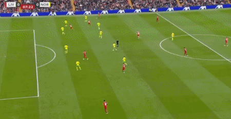 第29分钟,布拉德利在前场右侧拿球横传,努涅斯停球进入禁区中路单刀推射破门,利物浦2-1诺维奇。