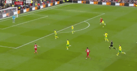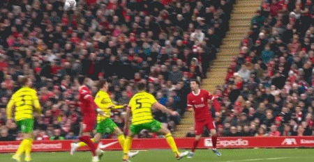 第95分钟,迪亚斯在禁区左侧控球连续摆脱后挑传到后点,跟进的布拉德利凌空横扫中路,赫拉芬贝赫头球顶进空门,利物浦5-2诺维奇。