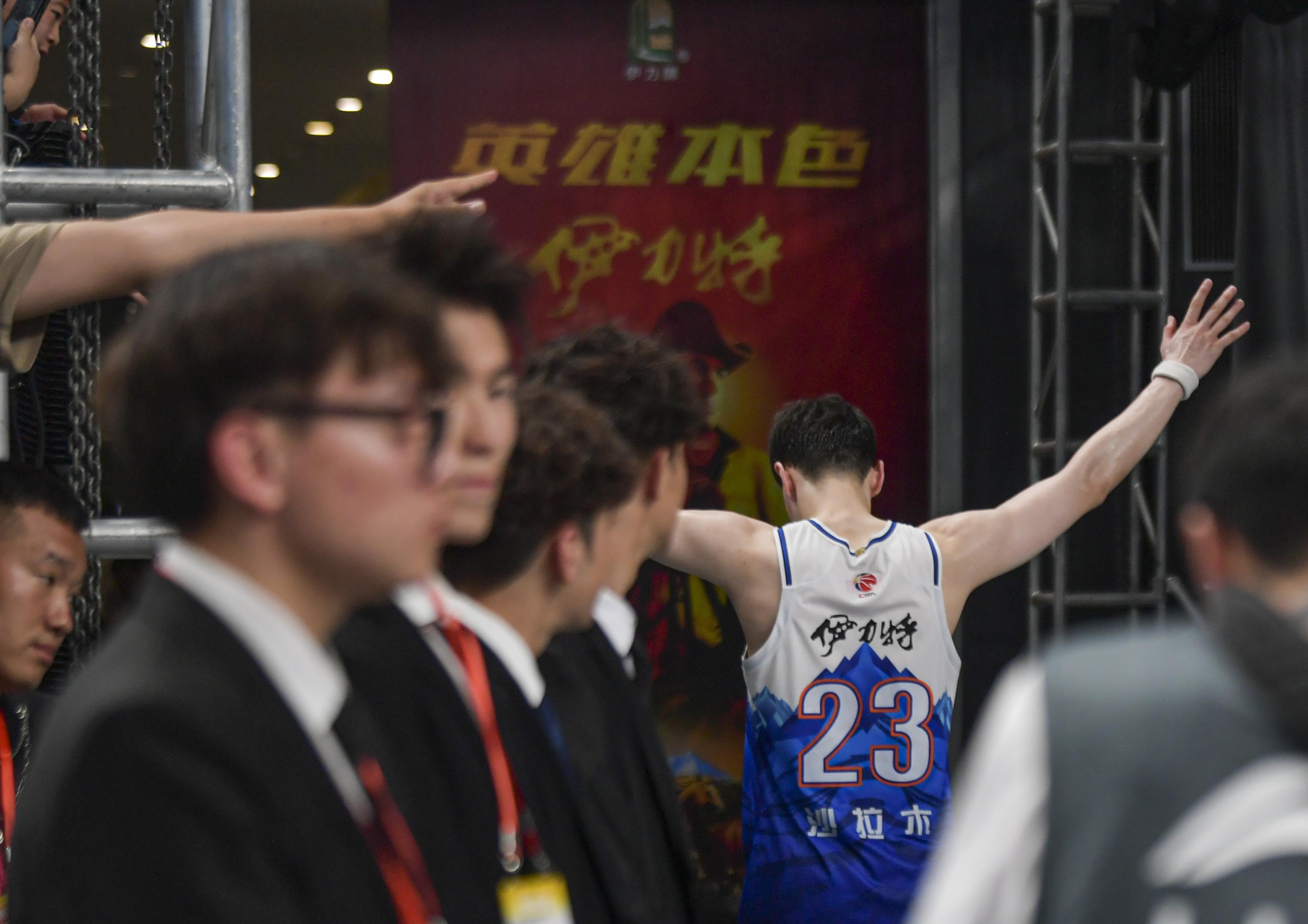 ↑新疆伊力特队球员阿不都沙拉木在比赛后离场。新华社记者 王菲 摄