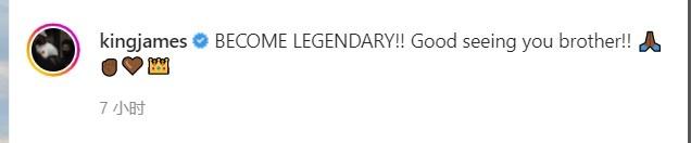 詹姆斯晒出合影写道:“成为传奇!很高兴见到你!兄弟!??✊???”