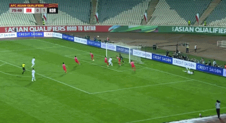 第76分钟,伊朗队快速反击,中前场连续一脚出球,阿兹蒙挑传门前,贾汉巴赫什头球破门扳平比分,伊朗1-1韩国!