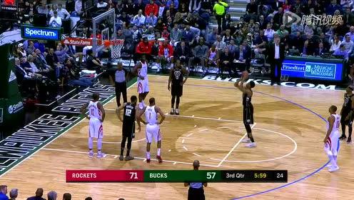 火箭胜雄鹿迎17连胜比赛集锦:哈登26+6字母哥30+7 保罗16+11