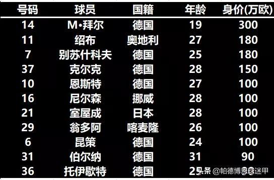 前锋: M·拜尔(19岁)德乙30场3⚽;