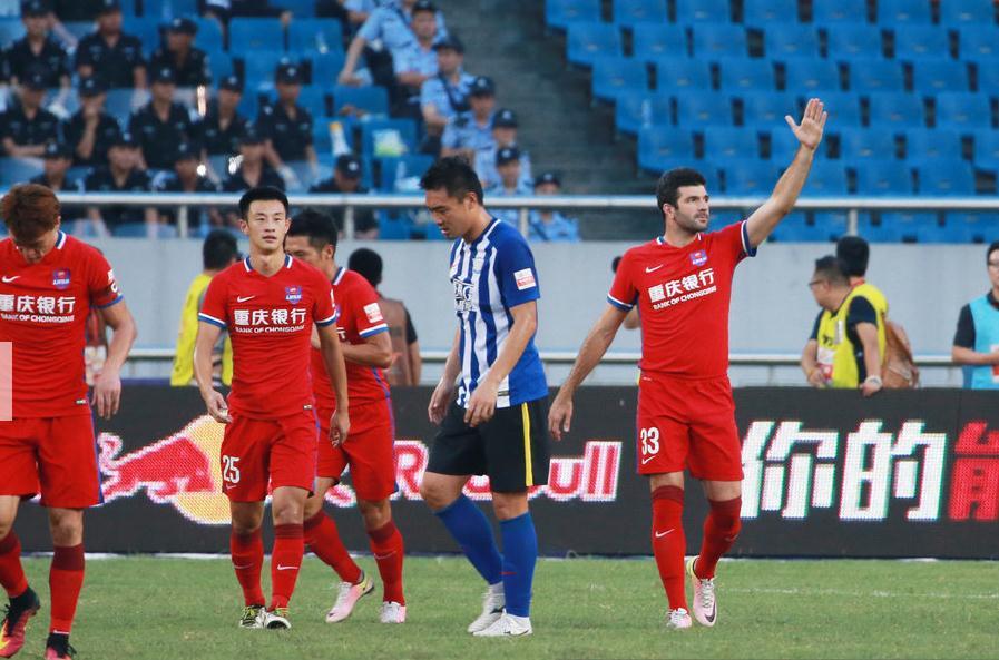 重庆力帆首发阵容:1-邓小飞;8-丁捷、15-米洛维奇、14-郑又荣、9-刘宇;18-徐洋、11-吴庆、6-王栋、16-王维成;32-费尔南多、33-吉利奥蒂