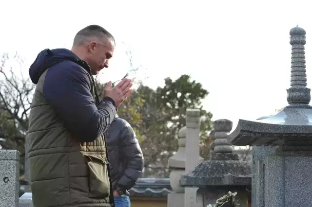 (图为“格斗暴君”彼得阿兹 到安迪哈格墓前祭拜)