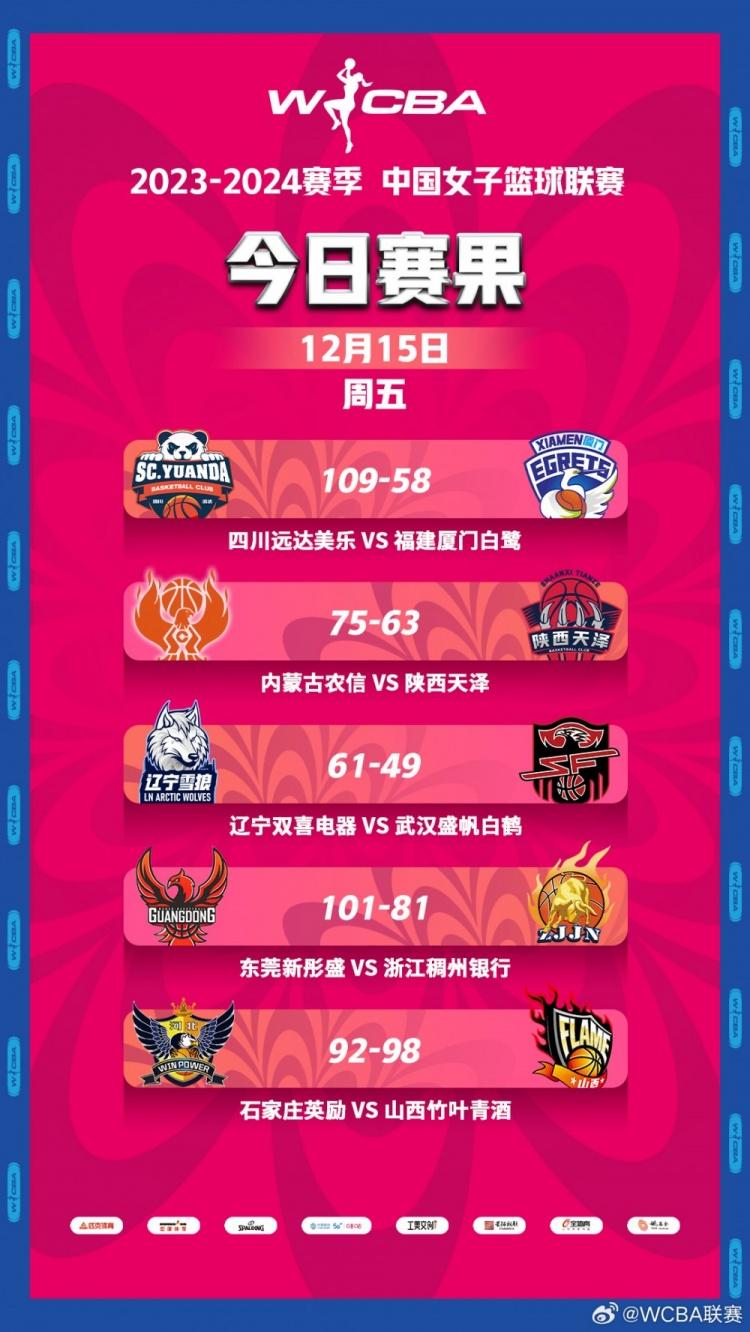 直播吧12月15日讯 2023-2024赛季WCBA联赛常规赛第二十二轮今日已全部战罢。