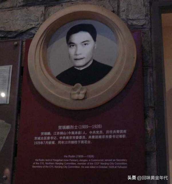 贺瑞麟1909年生于江苏铜山一个自耕农家庭,他曾任共青团南京市委书记。在中共南京组织遭受第三次大破坏时被捕,后来在南京雨花台去世,牺牲时年仅19岁。