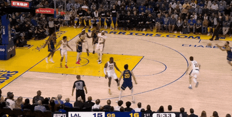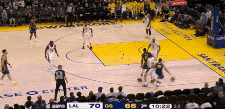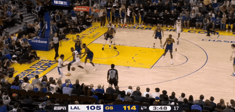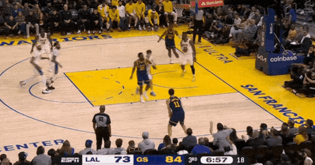 第三节,勇三疯!24-5!勇士三分雨不断,勇士87-73湖人
