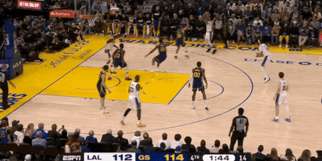 第四节,拉塞尔连续三分帮助球队反超,湖人115-114勇士