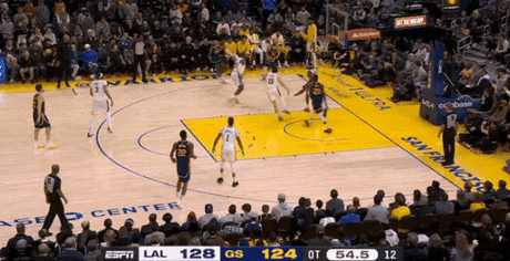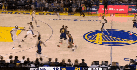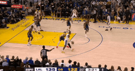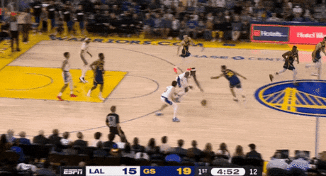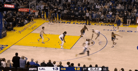 第一节,开局库里、詹姆斯相继送出秒传,湖人15-12勇士