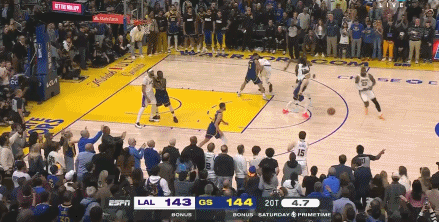 加时赛,库里自信扬手三分再度反超,勇士144-143湖人