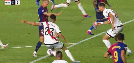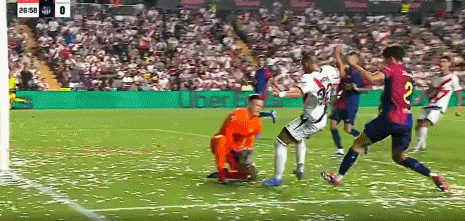 第9分钟,巴列卡诺右侧推进进攻,德弗鲁托斯下底横扫门前,乌奈-洛佩斯抢前点包抄破门,巴萨0-1落后。
