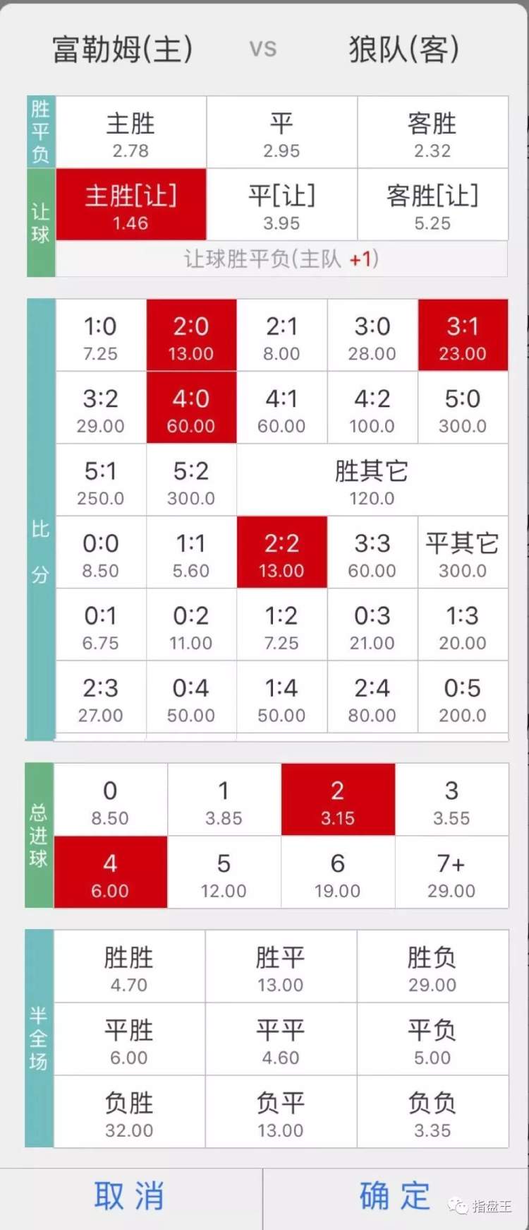 103 英超 20:30 富勒姆 VS 狼队 富勒姆胜或平,比分:2:0、2:2、3:1、4:0
