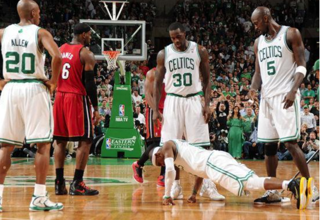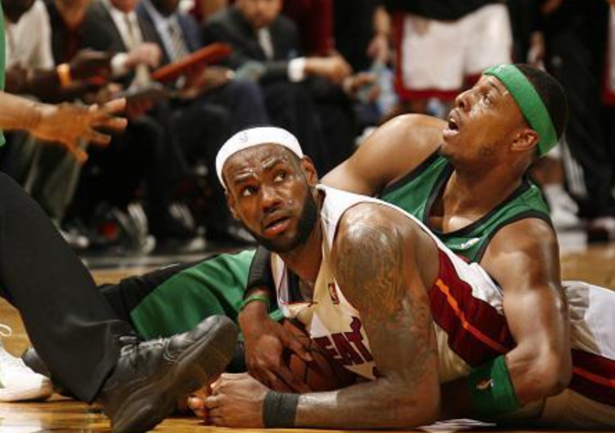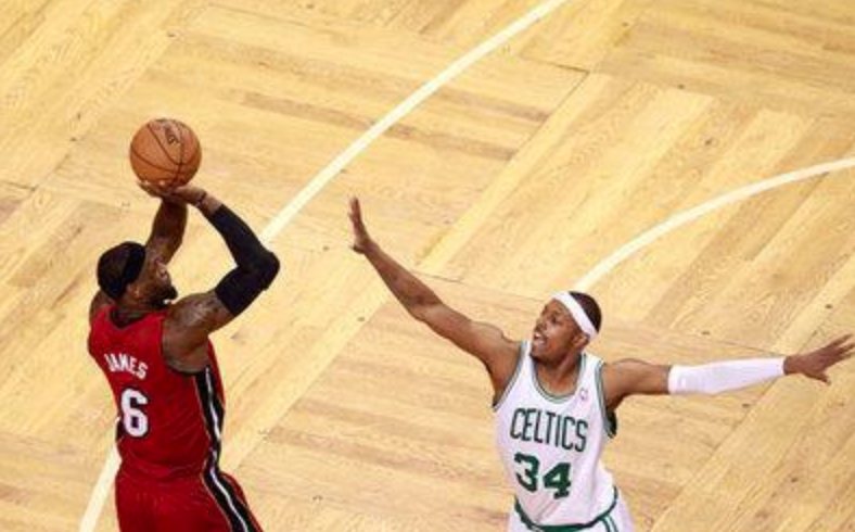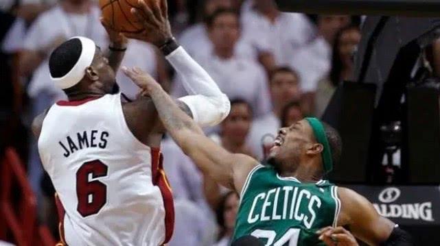 2012年季后赛,热火VS凯尔特人的第五战,皮尔斯顶着詹姆斯的防守命中了一记关键球,让凯尔特人3:2领先热火,皮尔斯赛后还放出话来:“詹姆斯永远别想过凯尔特人!” 热火再次被凯尔特人逼到绝境。可想而知詹姆斯当时面对多大的压力,不成功便成仁。