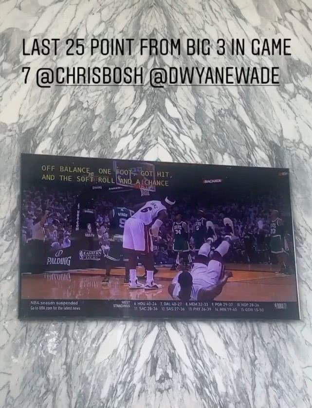 詹姆斯晒出那场比赛的画面,并配文写道:“我想念我的兄弟们了!@韦德@波什@巴蒂尔@哈斯勒姆@查尔莫斯@迈克-米勒@雷-阿伦(虽然你那一年在对手那边)。”