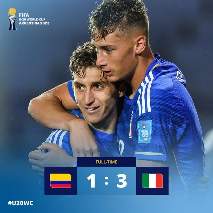 意大利U20在上半场第9分钟便首开纪录,现效力于切尔西的中场卡萨迪为意大利取得进球,随后第38分钟巴尔丹齐为意大利扩大领先优势,上半场结束意大利U20两球领先;随后下半场一开始埃斯波希托为意大利再下一城,尽管第49分钟哥伦比亚U20由托雷斯扳回一城,但哥伦比亚无力挽回场上局面,最终意大利U20以3-1战胜对手晋级半决赛。