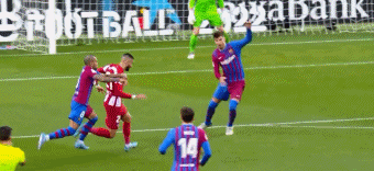 然而,马竞的梦幻开局迅速变成了一场噩梦。在马竞破门之后仅仅2分钟,特劳雷前场抢断后分球,阿尔维斯横传,阿尔巴左脚凌空抽射破门,完美复制了帕瓦尔对阵阿根廷时打入的2018年世界杯最佳进球。