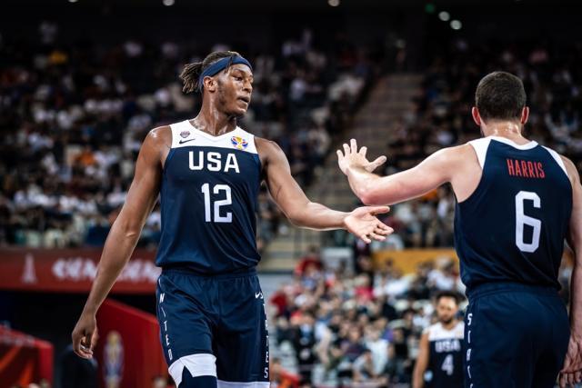 跟此前多场热身赛采用的首发阵容一样,波波维奇在世界杯首战中还是派出了沃克、米切尔、塔图姆、巴恩斯和特纳这5位首发。一来是因为几位球员是队内天赋和实力最高的球员,另外一个重要原因也是5人在时间不长的集训和热身赛中,算是美国队内比较有默契的几个人。