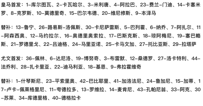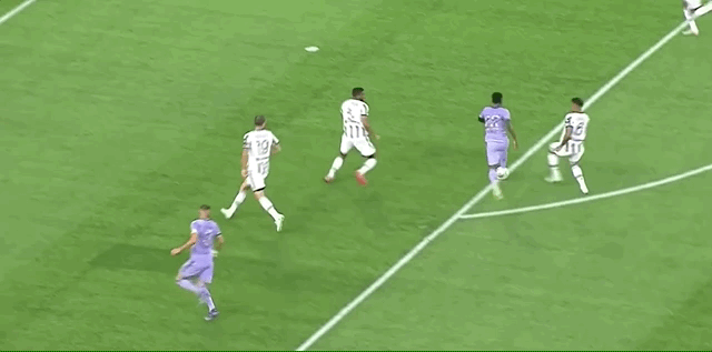 上半场剩余时间,皇马依旧攻势不断,第36分钟,本泽马1V1尝试过掉博努奇打门,但被意大利老将卡位化解;第42分钟,维尼修斯凭借个人能力右路突破后小角度打门,但打在了边网上,半场结束前,两队比分为1-0。
