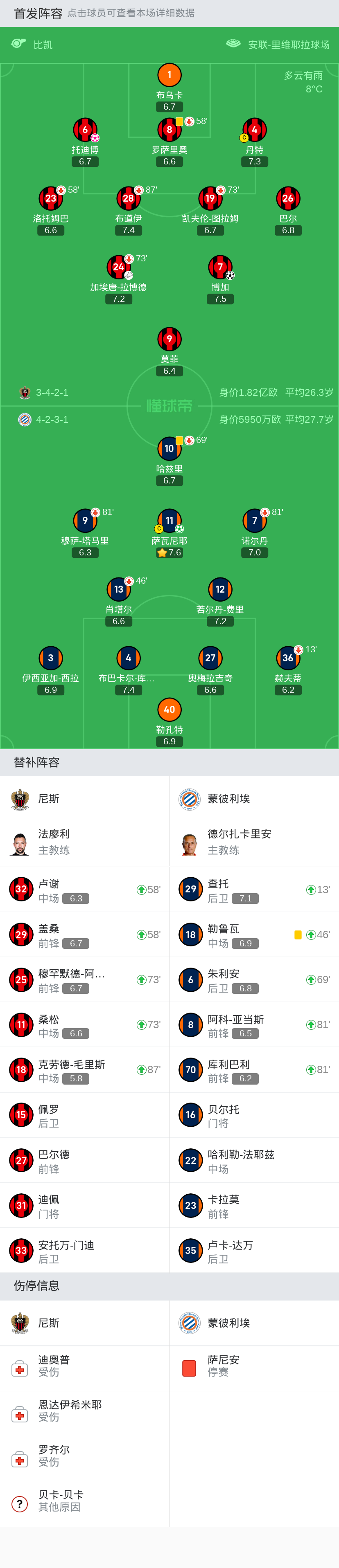 北京时间3月9日法甲联赛第25轮,尼斯主场对阵蒙彼利埃。