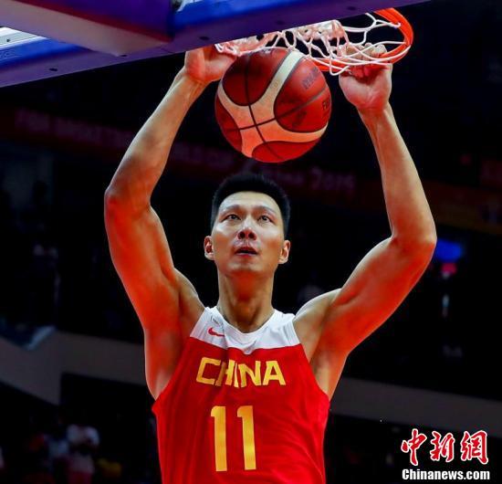 琦、周鹏缺阵,虽然赵睿末节爆发帮助中国男篮一度将差距缩小到3分,但是最终中国男篮70比73不敌巴西男篮。图为中国队易建联扣篮得分。