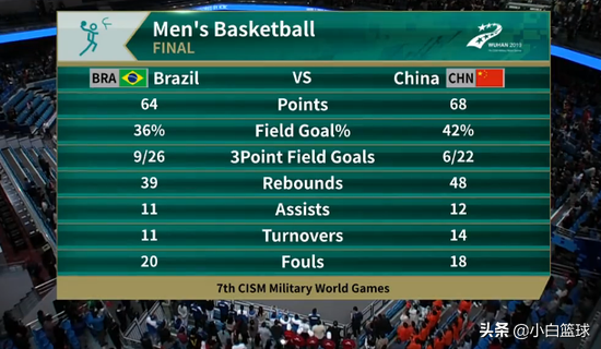 北京时间10月26日,2019年第七届军运会男篮项目3-4排位赛与冠亚军之战大战,中国男篮在铜牌之战中遇上了巴西男篮,这场比赛对于中国男篮来说是一场荣誉大战,因为在半决赛中他们集齐了天时地利人和却被立陶宛男篮一路压着打,打到最后一节神游太虚的全队才找到了感觉开始追分,只可惜恢复状态的时间太迟,最终67-70负于立陶宛,而这场3-4排位赛中国男篮的对手是B组第一的巴西男篮(3胜1负),战绩不如中国的4连胜,可这场比赛中男篮也险些输球,真的是让人捏了一把汗。