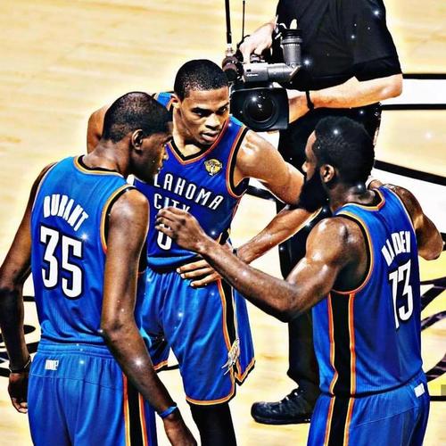 那时,詹姆斯还身处迈阿密热火队,携手闪电侠韦德和波什,组成三巨头;热火有三大球星坐镇,而雷霆在这方面也有骄傲的资本,杜兰特是当家老大哥,威少是二弟,哈登排行老三。这阵容,就如今看来,堪称豪华啊!