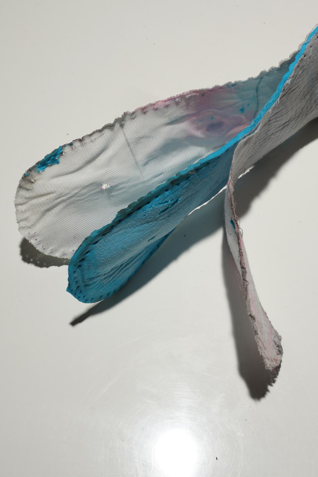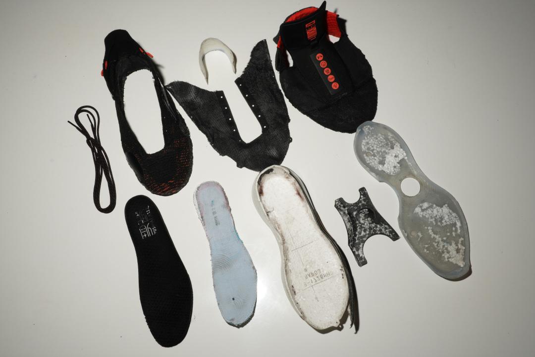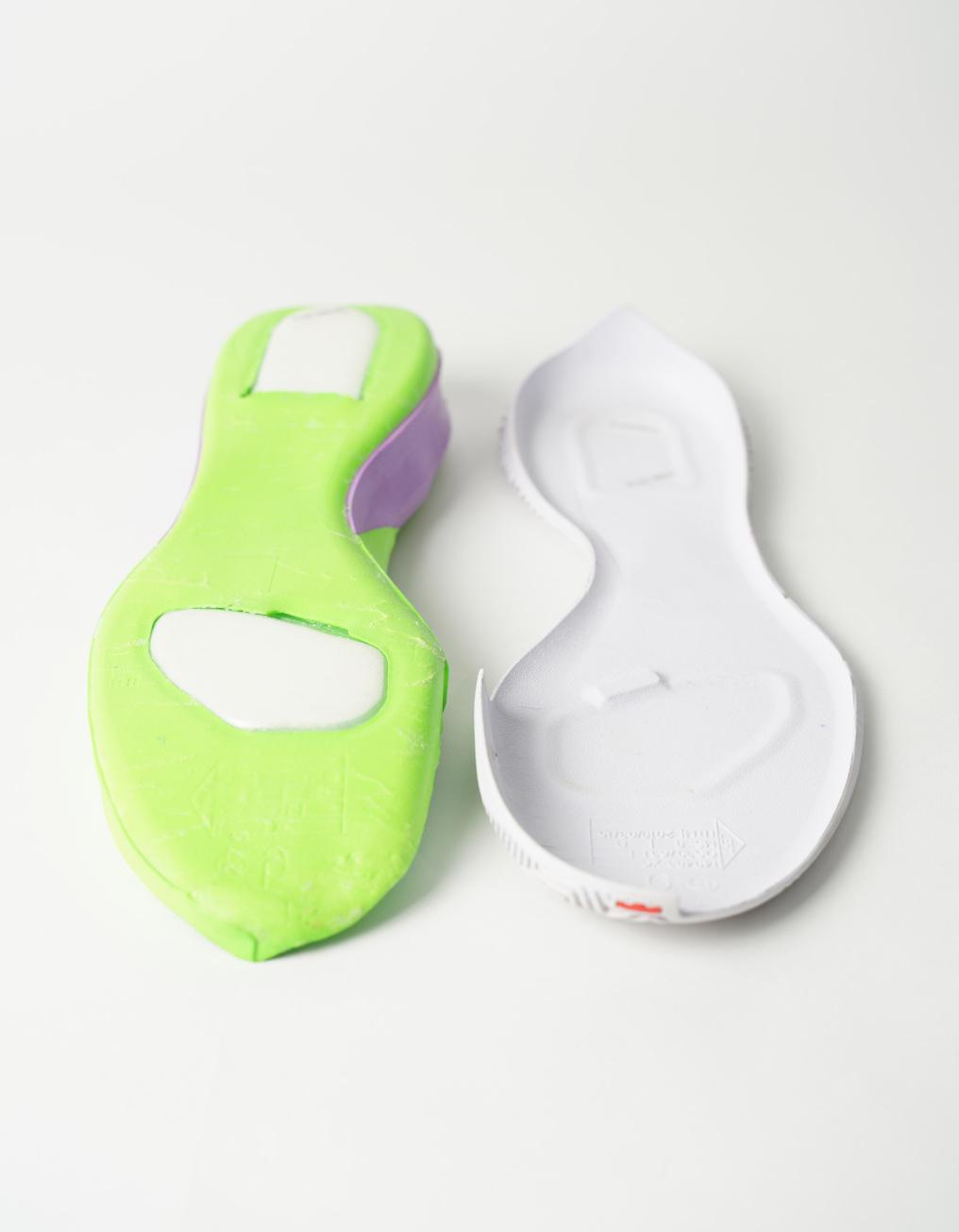 将球鞋外底和中底材料分开,看到最后的科技配置。
