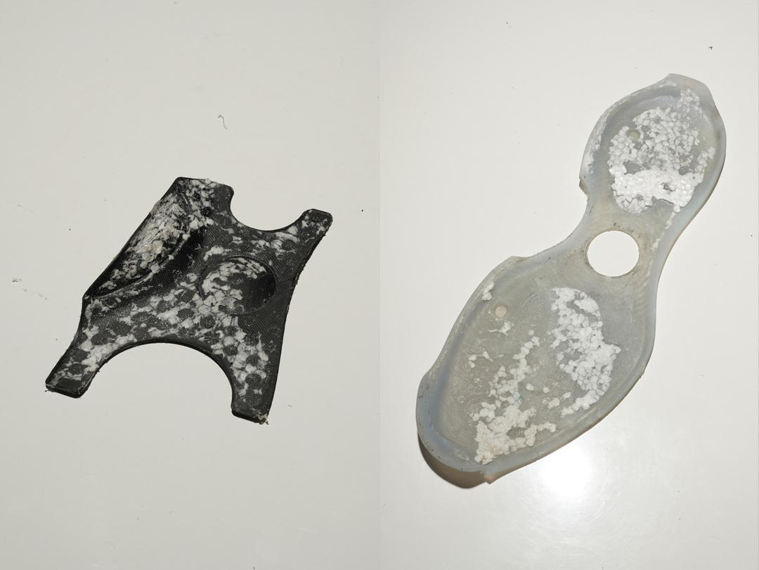 拆解Pebax材料非常脆弱,颗粒与颗粒之间极易散开,为了避免再次被暴君训话,选择放弃拆解侧向TPU胶条(此TPU条同样会和解胶剂反应腐烂)。