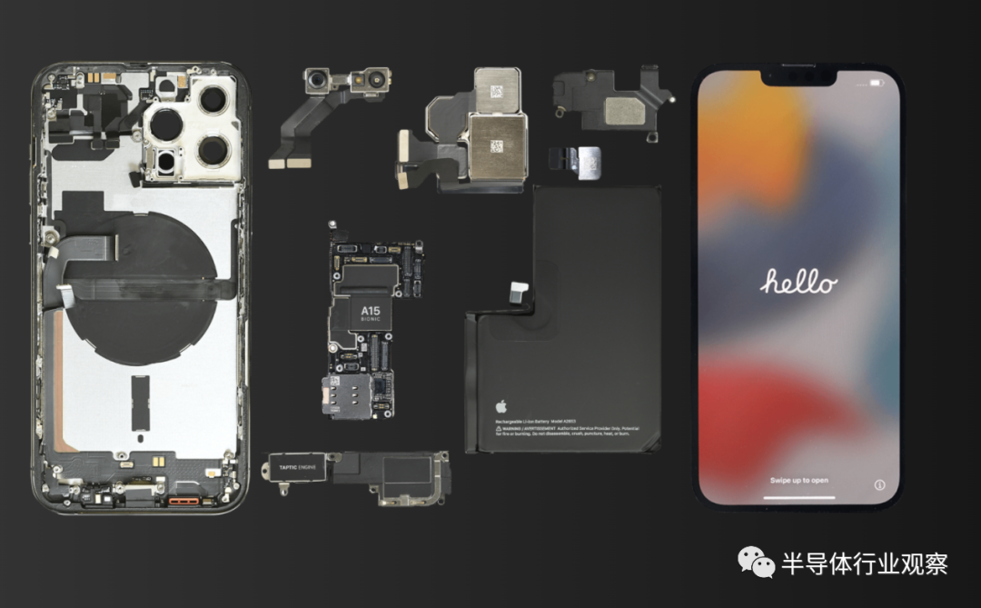 拆解显示,iPhone 13 Pro Max 采用了三星电子的 OLED显示屏,其成本约为 105 美元——比任何其他部件都贵。与其前代产品一样,新的显示屏覆盖着康宁的陶瓷屏蔽玻璃。由美国制造商与苹果公司联合开发的玻璃具有很强的抗冲击和抗破损能力。