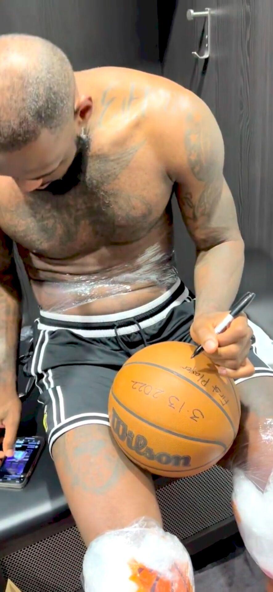 詹姆斯晒出的这个视频,总时长1分24秒,可见他打造这个签名球多么细心。詹姆斯虽然打球是右手,但写字用的是左手。在打造签名球时,因为怕写错,詹姆斯还看了一眼手机,确认了一下。他在写字的时候赤膊上身,腰上和两个膝盖上都缠着冰袋,充分说明了这一神迹的到来绝非轻而易举,37岁的他,确实经历了太多。