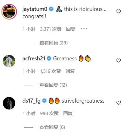 丹尼-格林:“??????恭喜兄弟!继续前进!”