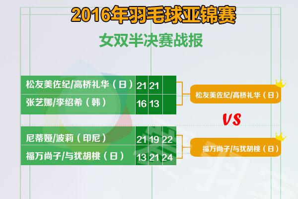 女双:松友美佐纪/高桥礼华晋级,决赛将上演日本“内战”